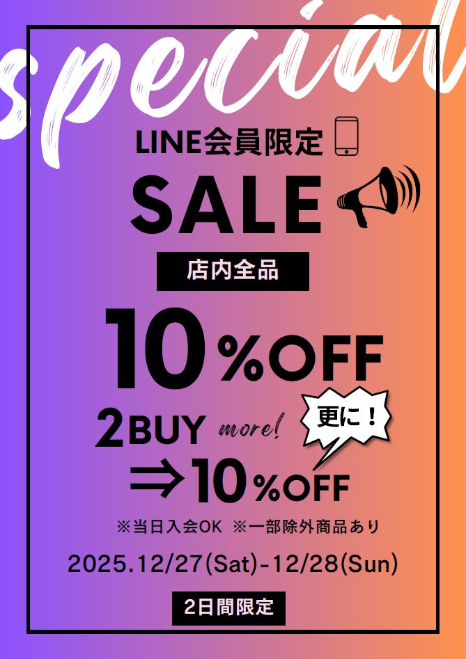 2点以上のご購入で合計金額よりレジにて更に10%OFF!!